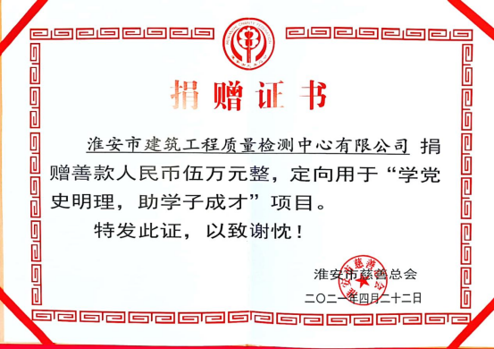 公司大力踐行勞模精神,以“愛崗敬業(yè)、爭創(chuàng)一流、艱苦奮斗、勇于創(chuàng)新”引領企業(yè)發(fā)展,以“淡泊名利、甘于奉獻”回饋社會。近年來,公司先后向淮安市第四人民醫(yī)院捐款助力疫情防控救治;向淮安藍天救援隊捐贈工作經(jīng)費;向慈善總會定向捐資,認購疫情影響下滯銷的農(nóng)產(chǎn)品;前往敬老院獻愛心、捐物資。