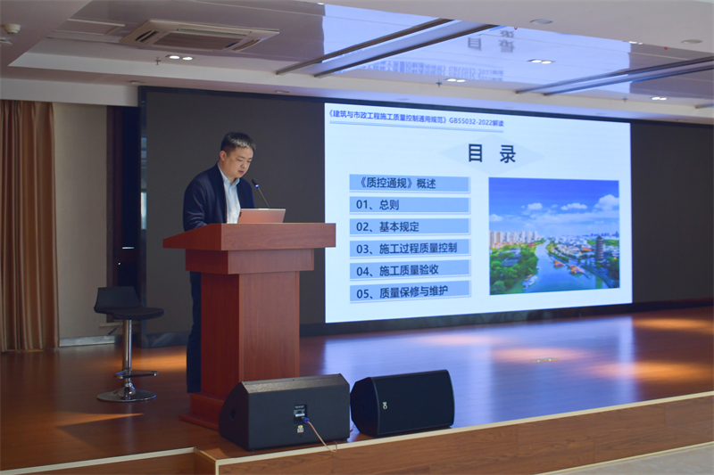 接下來由淮安市建設工程質(zhì)量監(jiān)督站李偉科長作政策宣講,圍繞《建筑與市政工程施工質(zhì)量控制通用規(guī)范》進行講解和答疑,要求各單位會后深入學習,嚴格執(zhí)行,進一步強化質(zhì)量意識,避免建設工程質(zhì)量常見問題的發(fā)生,以先進的質(zhì)量管理理念和科學的施工方法,促進淮安市建設工程質(zhì)量水平的穩(wěn)步提升。